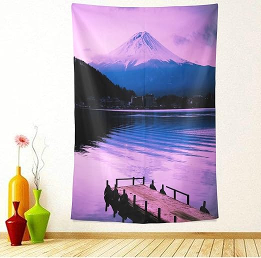 Amazon Gorira ゴリラ 人気 トップ飾り 夕べの富士山 パープル パーティー 部屋 窓や壁かけ用 タペストリー 多機能 装飾用品 約丈152cmx幅130cm インテリア オンライン通販