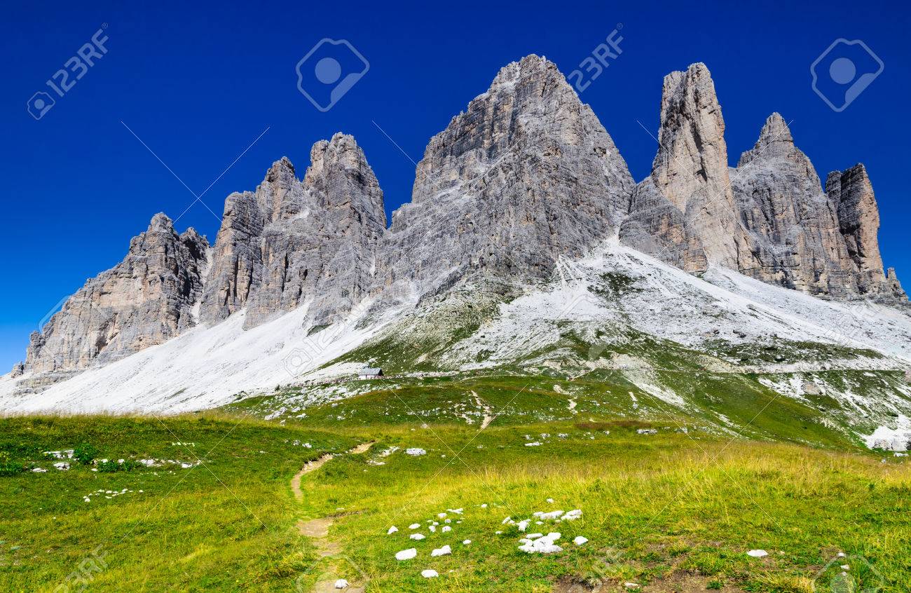 ドロミテの山々 ヨーロッパ アルプスで最も有名な山のグループの 1 つの有名な Tre Cime Di Lavaredo Drei Zinnen を表示します の写真素材 画像素材 Image 34971679