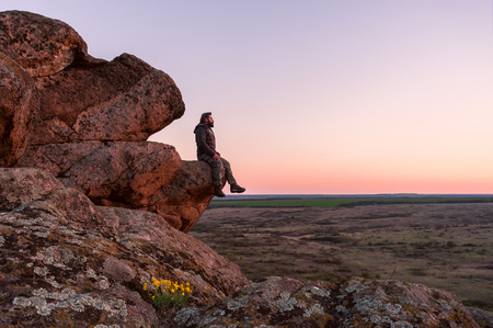 山の頂上に幸せな若い旅行者 1人のストックフォトや画像を多数ご用意 Istock